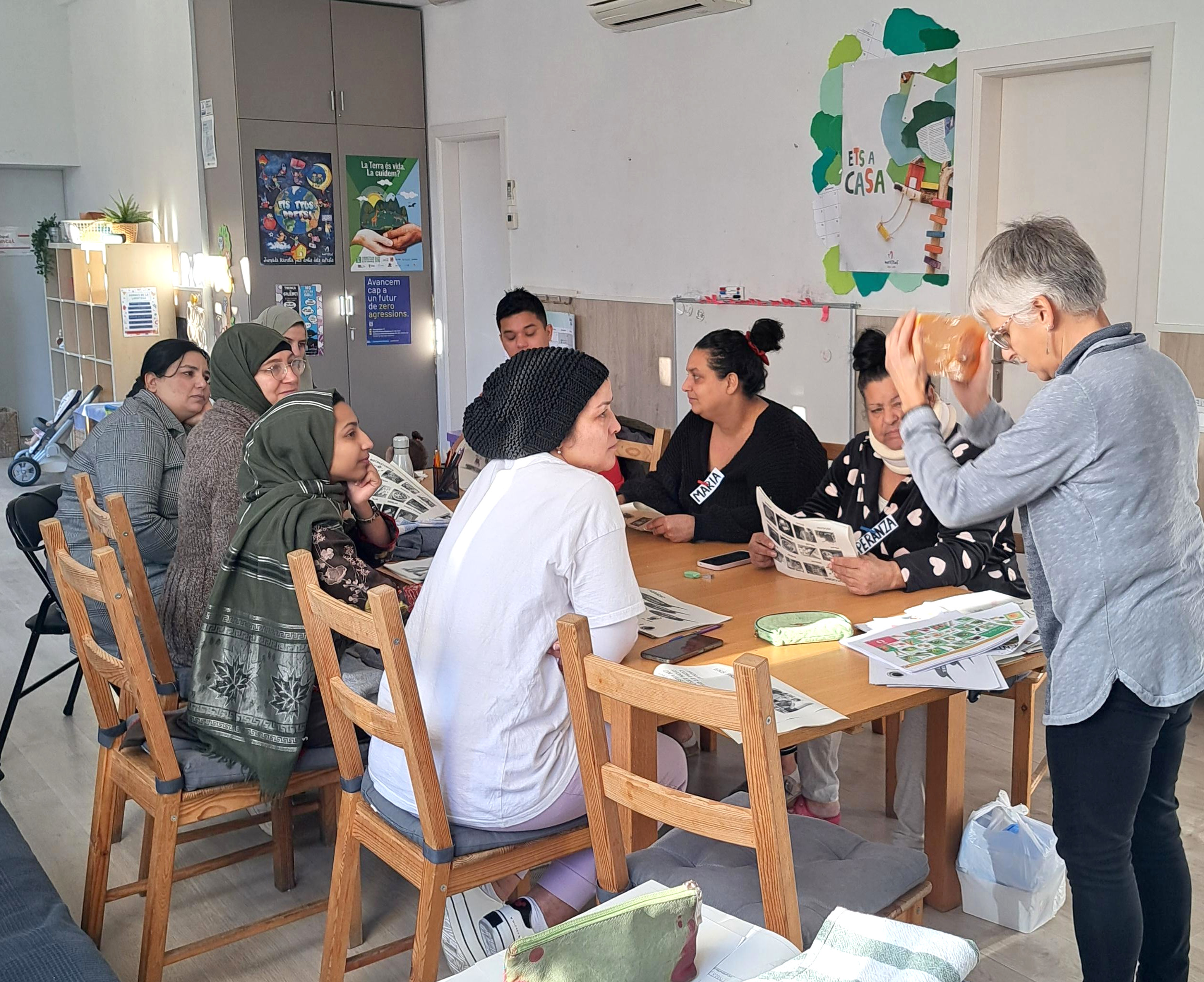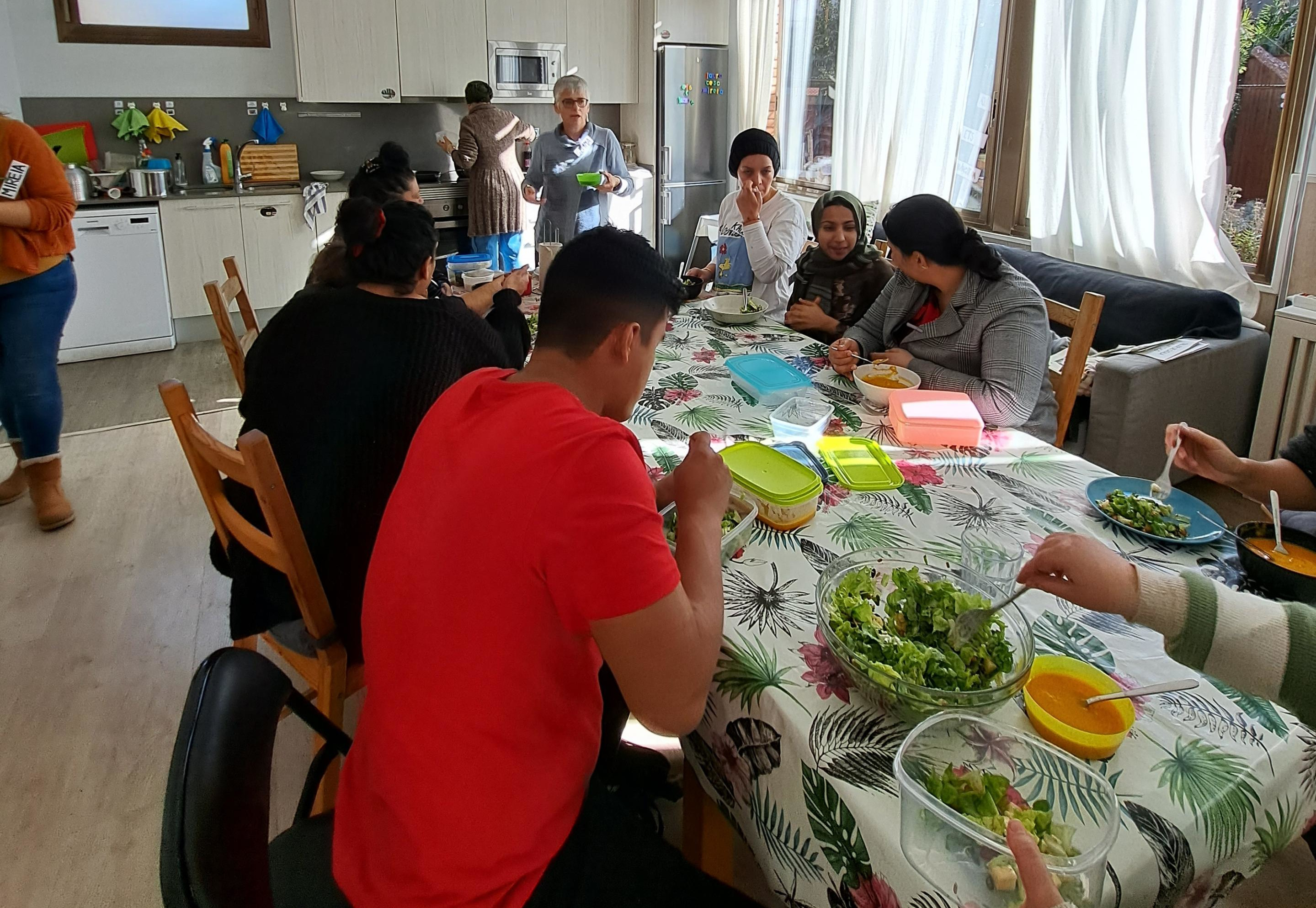 Deu persones procedents del Marroc, d'Hondures, del Pakistan i de Catalunya van assistir al taller. Després de presentar-se van explicar quines fruites i verdures els agraden i quines no els agraden, van repassar el nom dels ingredients que necessitaven per preparar dues receptes i es van repartir la feina. Mentre uns tallaven la carbassa, la pastanaga i la ceba per fer la crema de carbassa i pastanaga, els altres començaven a rentar l'enciam i preparaven l'amanida. També van fer dos jocs de vocabulari d'estris de cuina mentre esperaven que s'acabés de coure la crema.