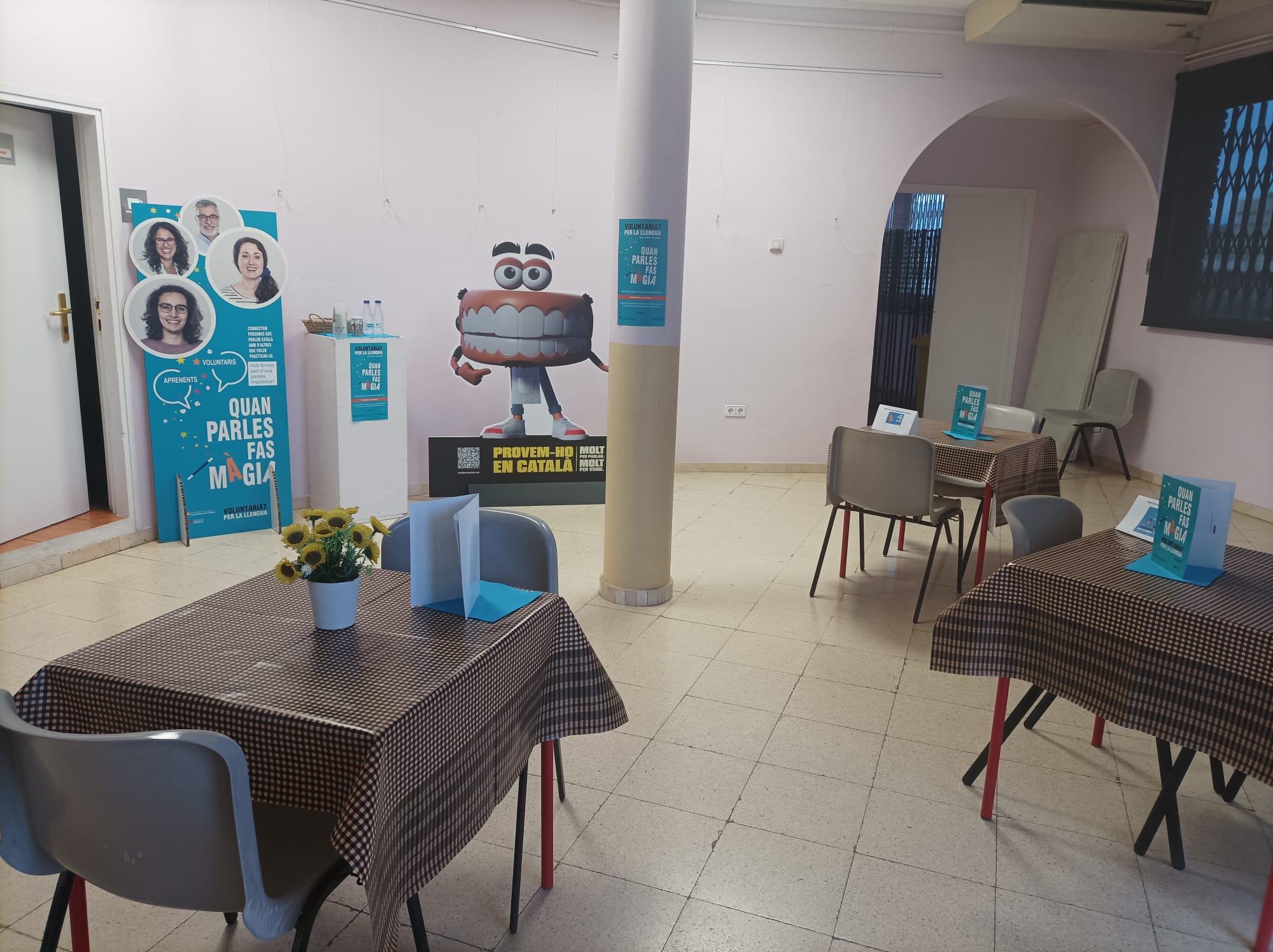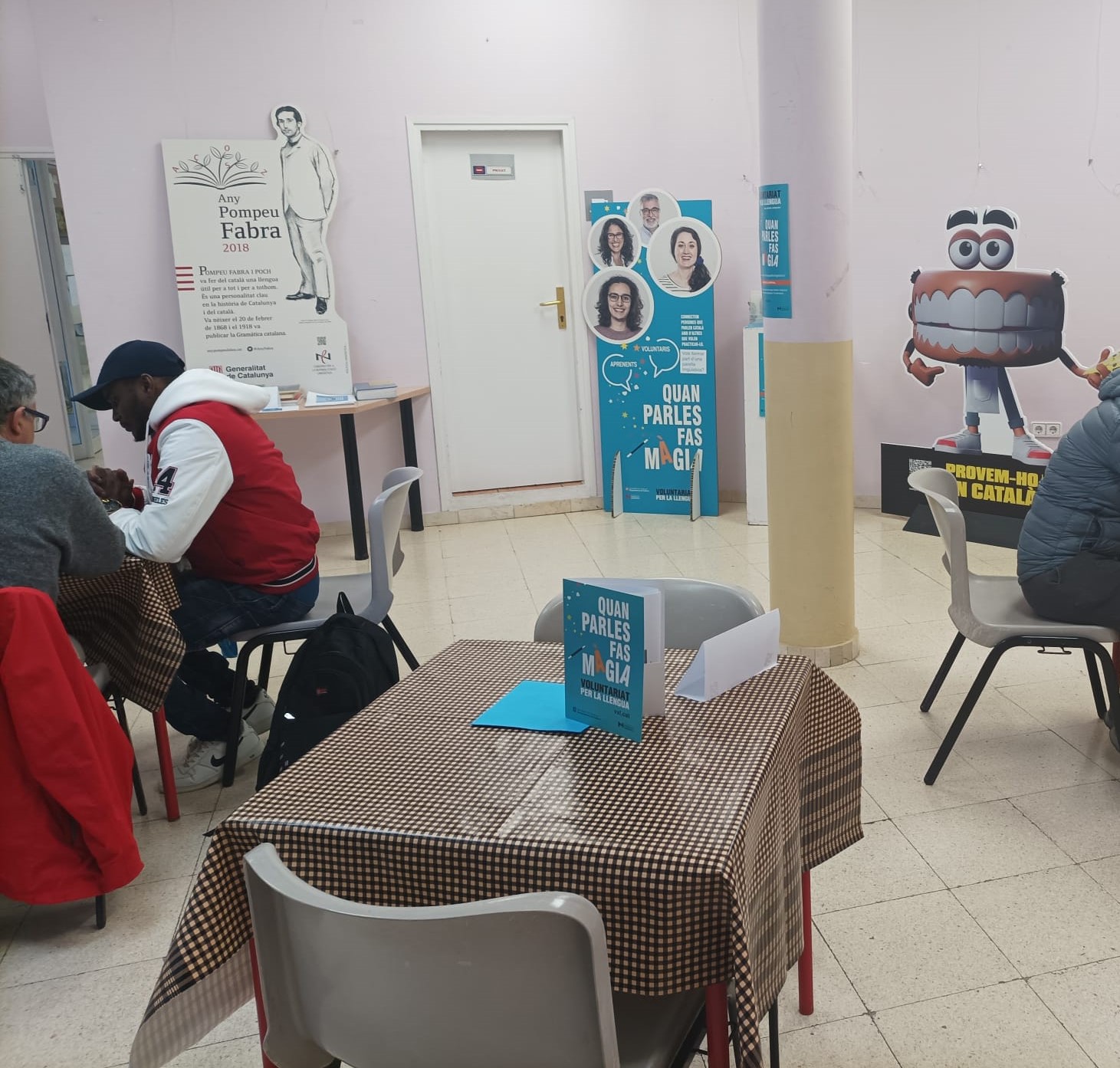 Per gentilesa de Cultura, aquestes parelles poden prendre un refresc o una infusió, que tenen a la seva disposició en un petit espai dins la sala. També compten amb llibres, revistes, diccionaris, fitxes “llegir per parlar”, quadernets “Parlem tu i jo” per iniciar la conversa. En la decoració i posada en marxa de l’espai també hi van participar les administratives, Pepa Rouch i Olga Sánchez, a qui també els va agradar la idea de donar més vida a la Sala Riu Mogent.
