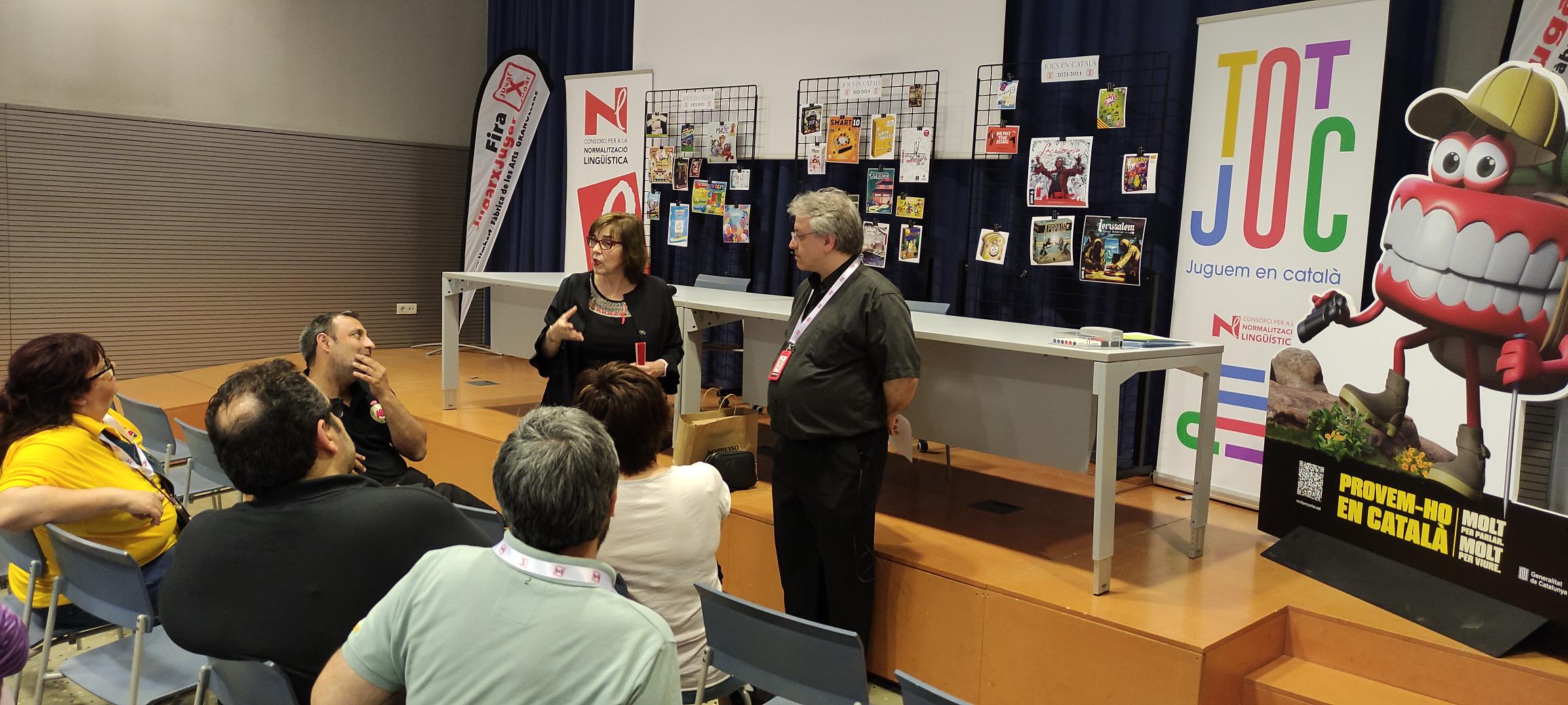 Tot seguit, a la nau Dents de Serra de Roca Umbert, el Servei Local de Català de Granollers va muntar-hi un estand amb difusió del programa Totjoc, mostra de jocs en català i un Paraulògic gegant creat especialment per part de l’equip de VilaWeb i Rodamots. Les persones que ho volien podien jugar-hi escrivint les respostes en un paper o virtualment escanejant un codi QR, a través del qual també van poder-hi continuar jugant durant la resta de dies de la fira.