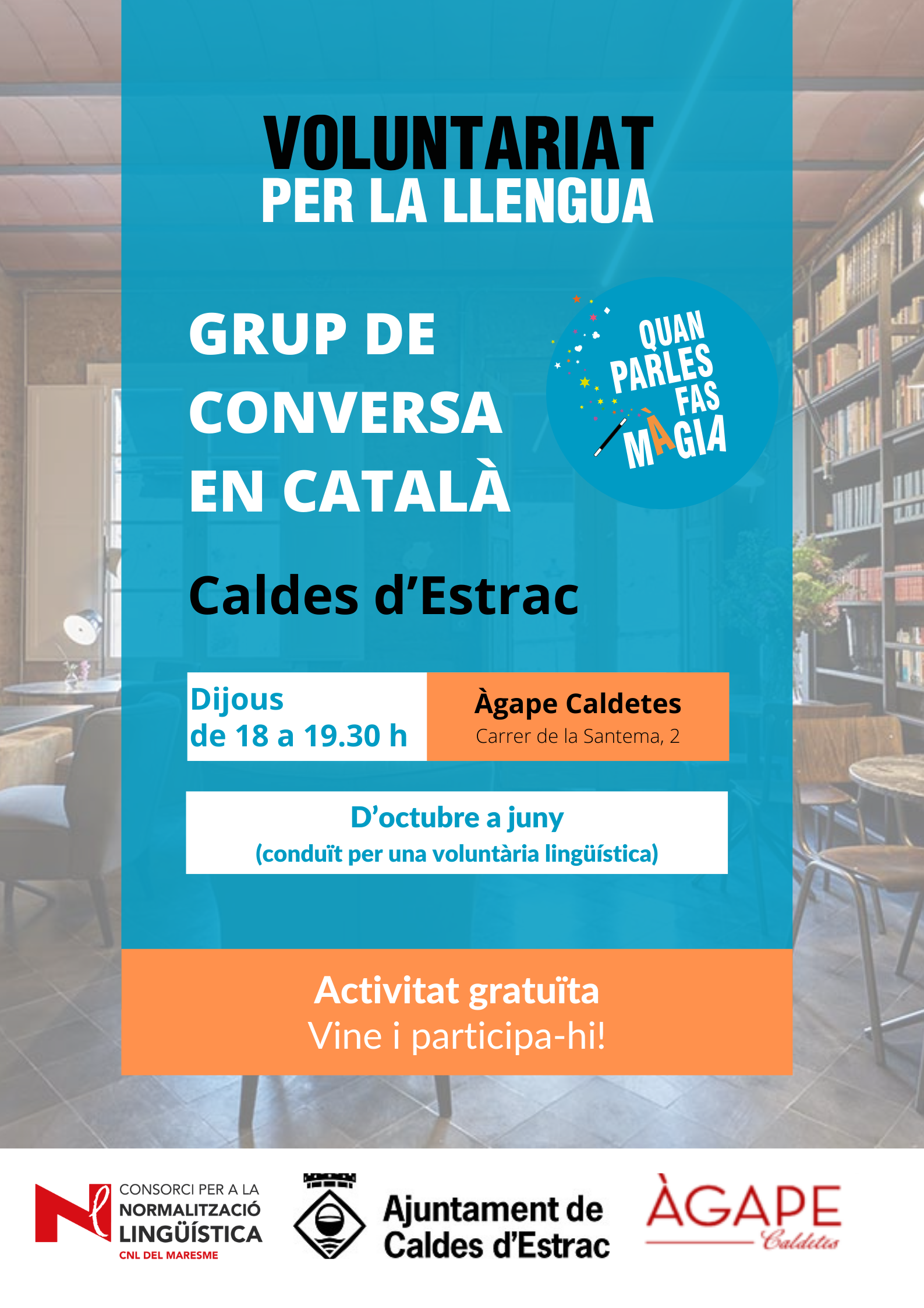 La col·laboració arrenca amb la programació d'un grup de conversa en català dinamitzat per voluntaris lingüístics, que tindrà lloc els dijous de 18 a 19.30 h. Començarà el 2 d'octubre i durarà fins al mes de juny. Les inscripcions es poden fer directament a l'establiment.