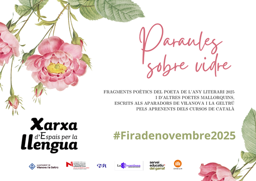 Amb motiu de la Fira de Novembre, les diferents organitzacions que formem part de la Xarxa d'Espais per la Llengua de Vilanova i la Geltrú han posat en marxa la tercera edició de l'activitat de difusió literària "Paraules sobre vidre".