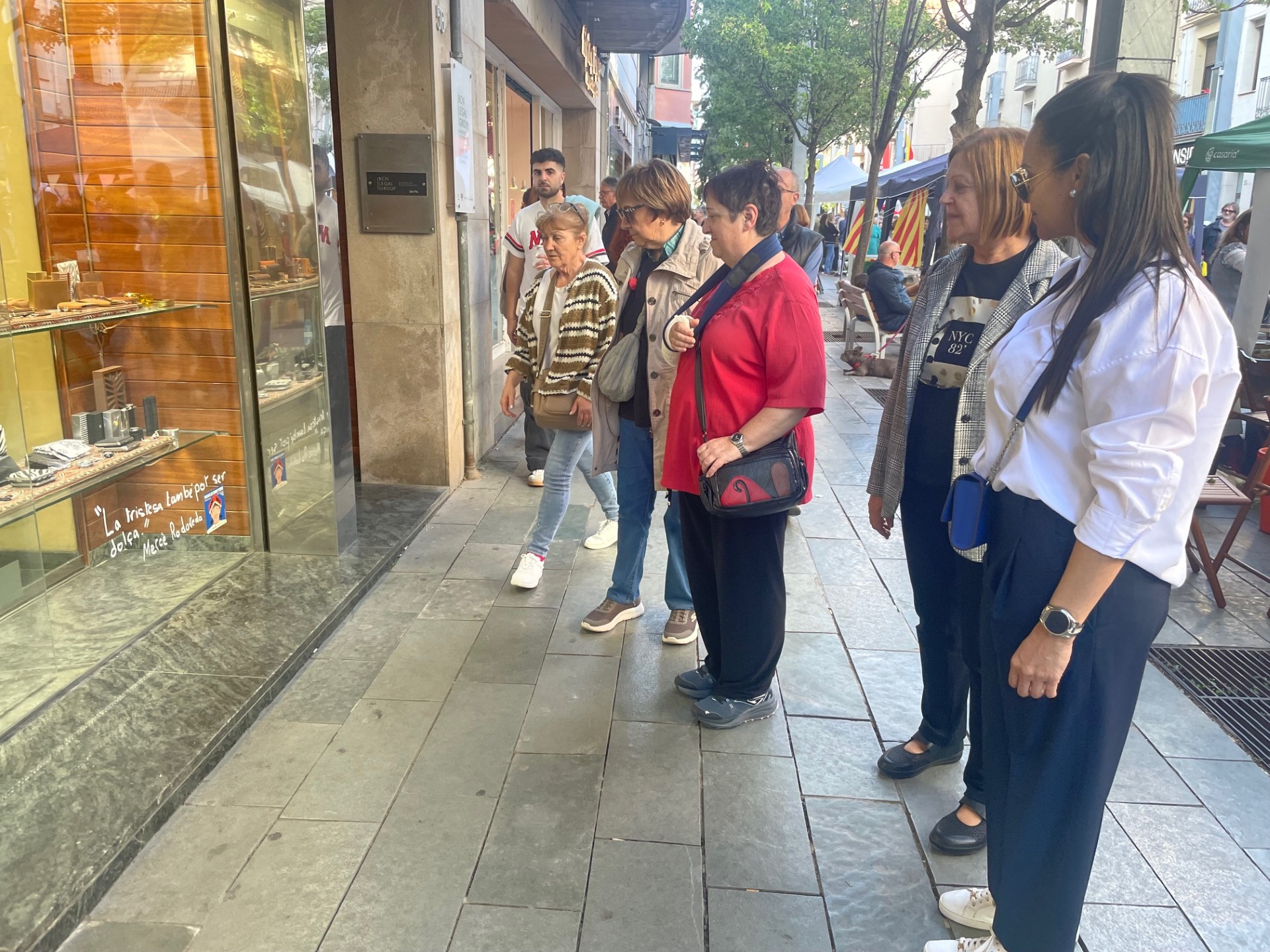Tot seguit, van passejar pels carrers plens de parades de llibres i roses, que van omplir el centre de vida i color. Durant el recorregut, els participants van poder descobrir els aparadors de diversos establiments de la ciutat, decorats amb textos de Mercè Rodoreda.