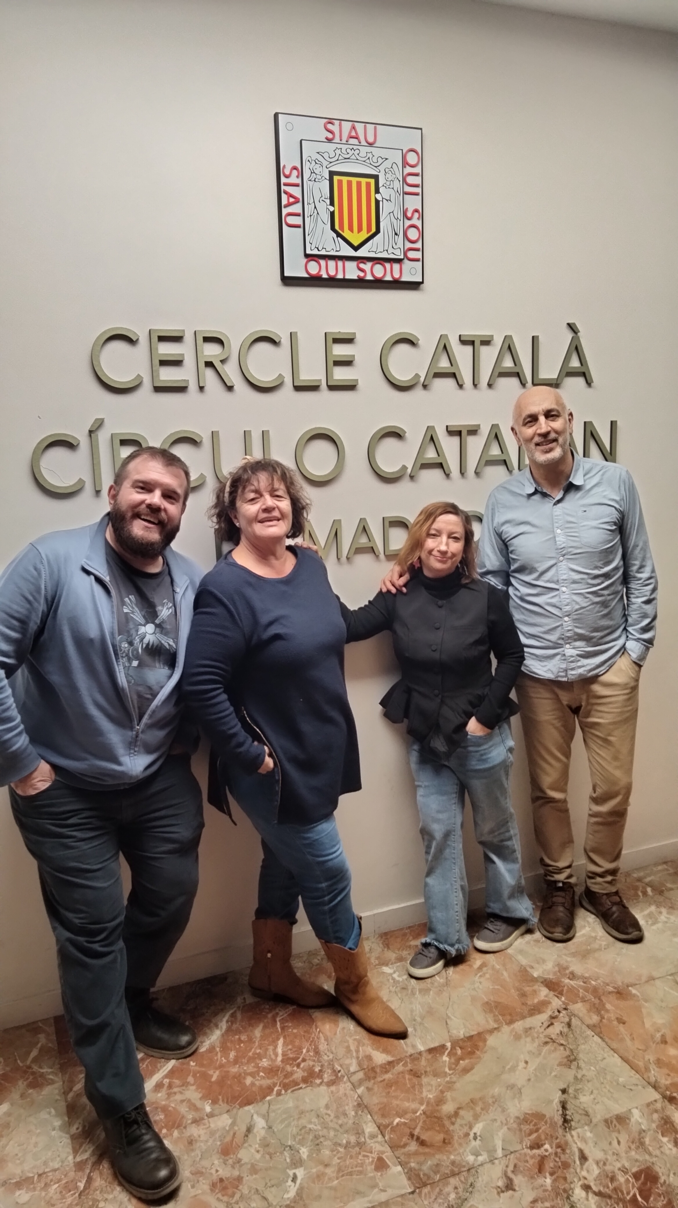 Hola! Som la Yolanda, la Rosa, el Roberto i el Benito i fem les trobades lingüístiques del Voluntariat per la llengua (VxL) de manera presencial al Cercle Català de Madrid; ens hi apleguem un cop a la setmana.