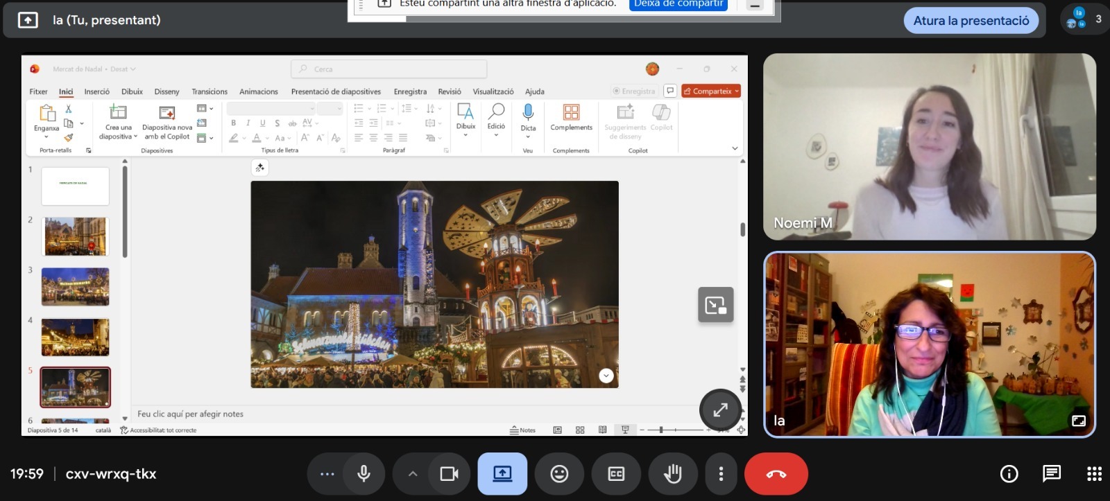 Aquestes festes de Nadal, la darrera conversa de 2025 va girar al voltant de les tradicions nadalenques a Alemanya i a Galícia. La Noemi va explicar com es viu el Nadal a Ourense, amb els mercats, les trobades familiars i les especialitats gastronòmiques. La Mireia, per la seva banda, va descriure l’ambient nadalenc de Braunschweig, amb els carrers il·luminats, el fred a fora i la calidesa de les trobades a dins de casa.